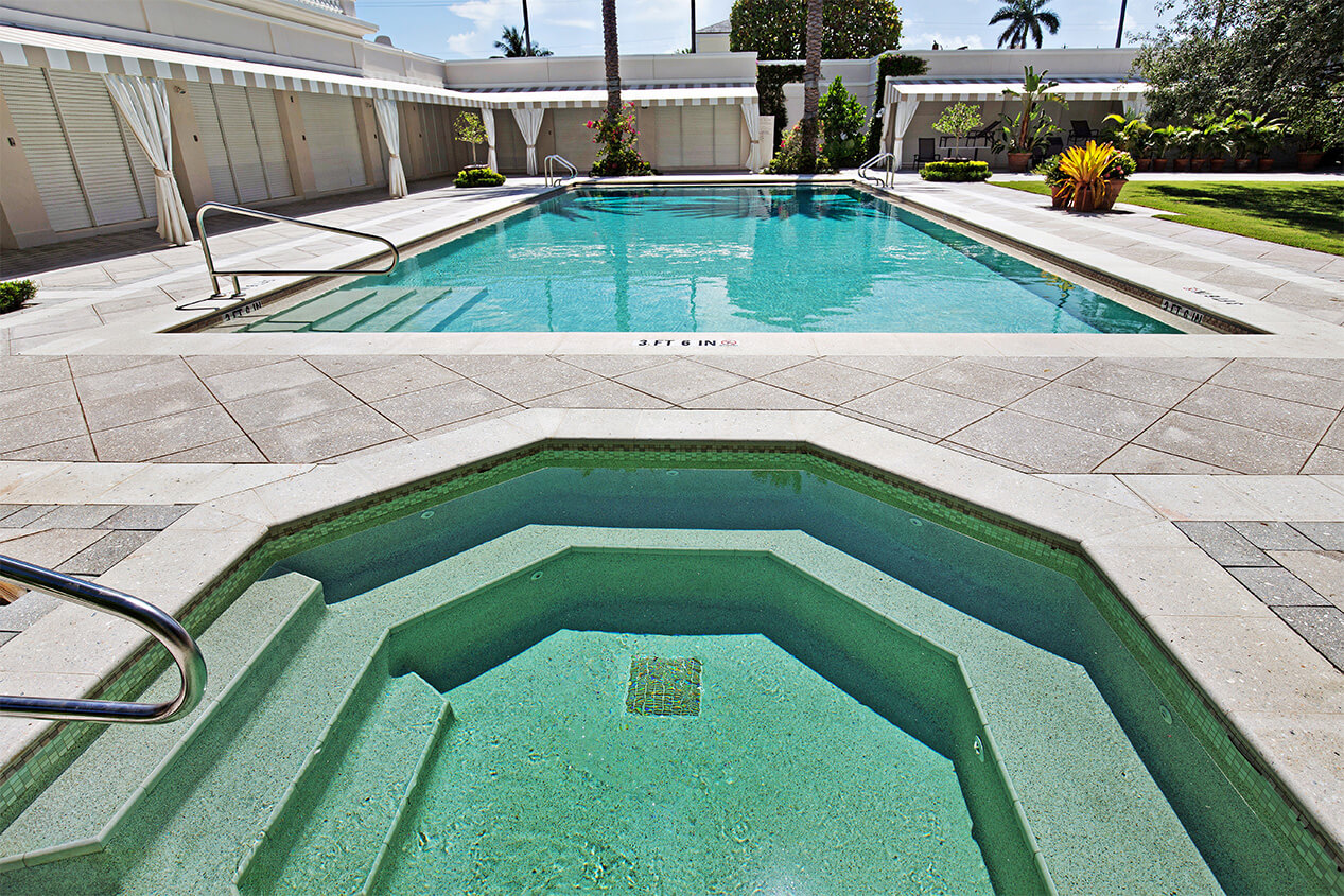 This Palm Beach, FL Condominium building, the Parc Regent, required a 3-phase upgrade for the lobby and elevator, the outdoor pool and the driveway.